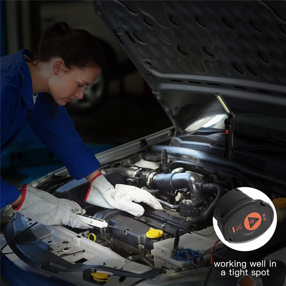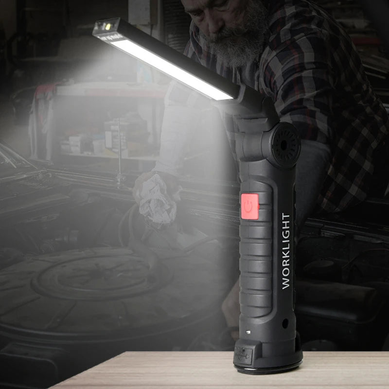 Võimas LED lamp, mille küljes oleva 360 kraadi liigendi abil on võimalik valgusallikat pöörata erinevatesse asenditesse. Lambil on kinnitamiseks riputusaas ja magnet.