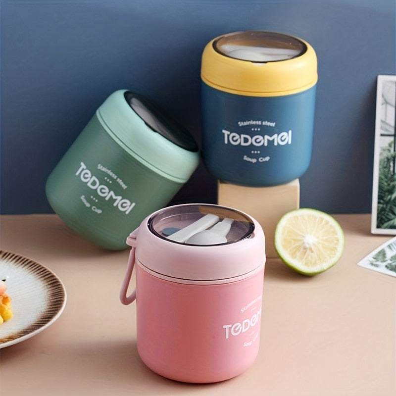 Kaasaskantav toidutermos sobib suurepäraselt nii joogi, supi kui ka toidu jaoks. Tänu tihedalt suletud ja lekkekindlale disainile saad kindel olla, et toit või jook on turvaliselt anumas ja ei valgu välja. Lisaks säilitab termos toidu ja joogi temperatuuri pikka aega tänu oma pikaajalisele soojusisolatsioonile.
