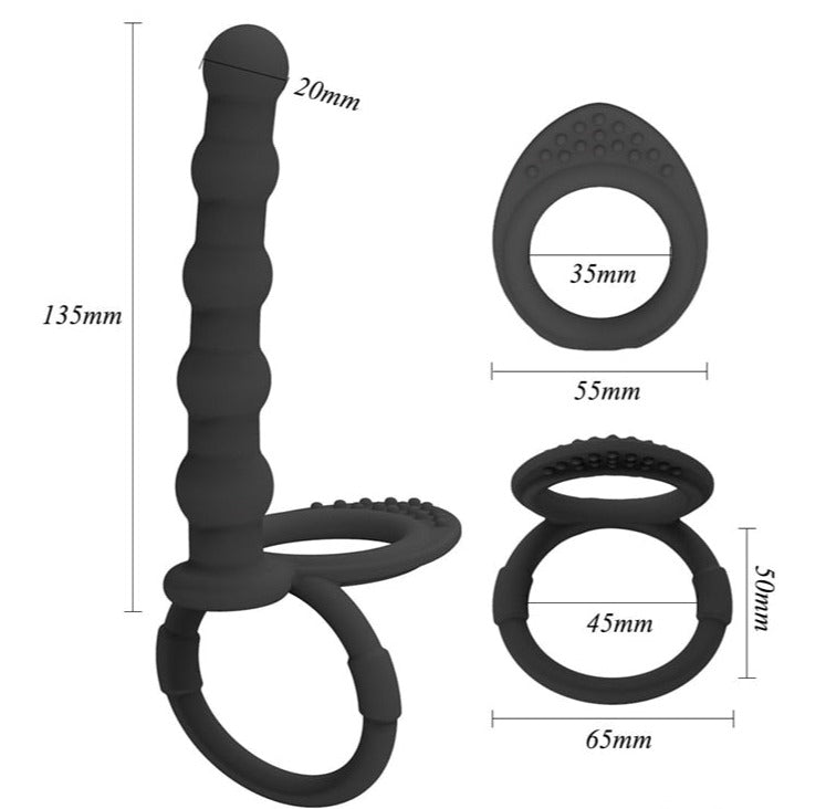 Peenise- ja munaderõngas koos anaaldildoga aitab säilitada erektsiooni, pikendada naudingut ja stimuleerida anaalpiirkonda.