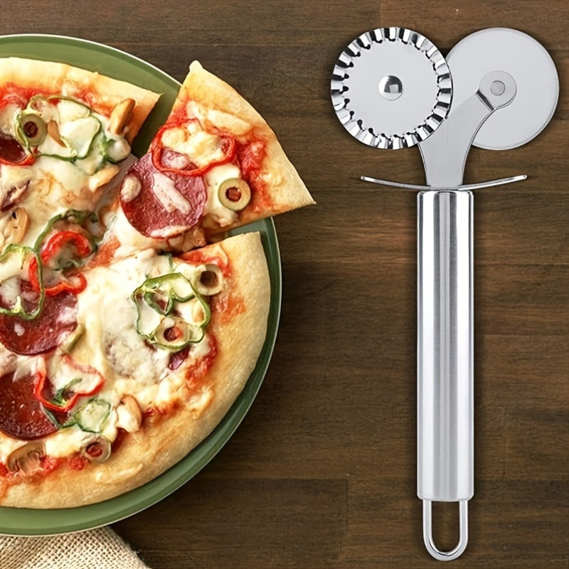 Kahe teraga pitsalõikur lõikab pitsa kiiresti ja ühtlaselt ilma pitsakatet rikkumata.
