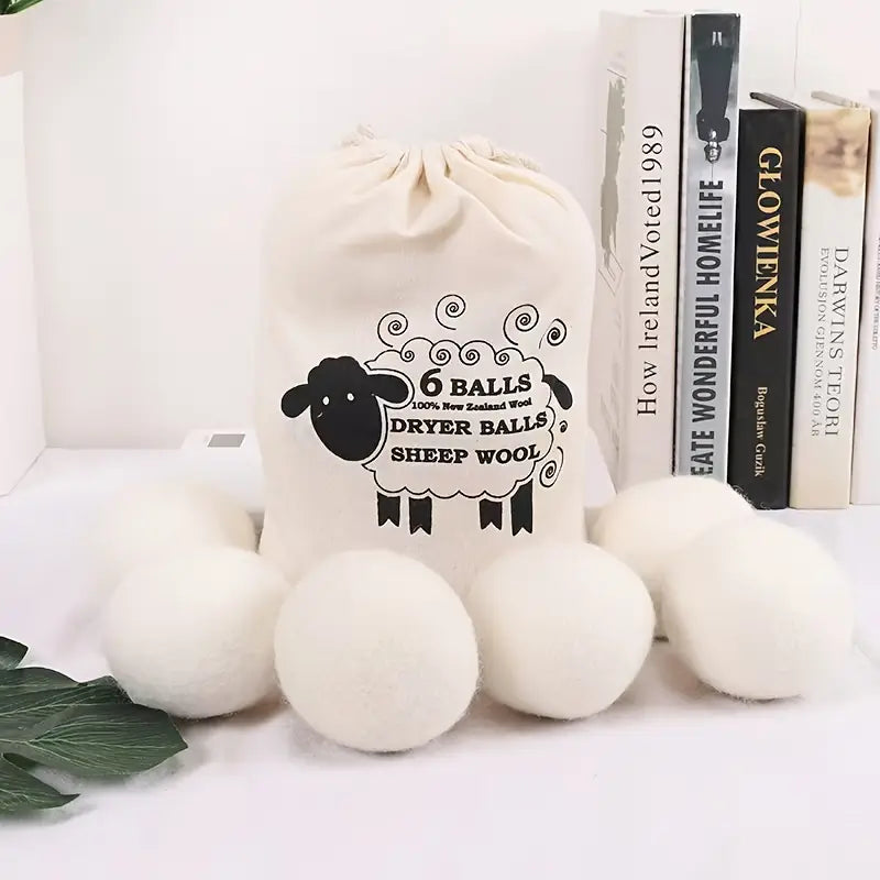 - Komplektis 6 villast kuivatuspalli ja nööriga hoiukott