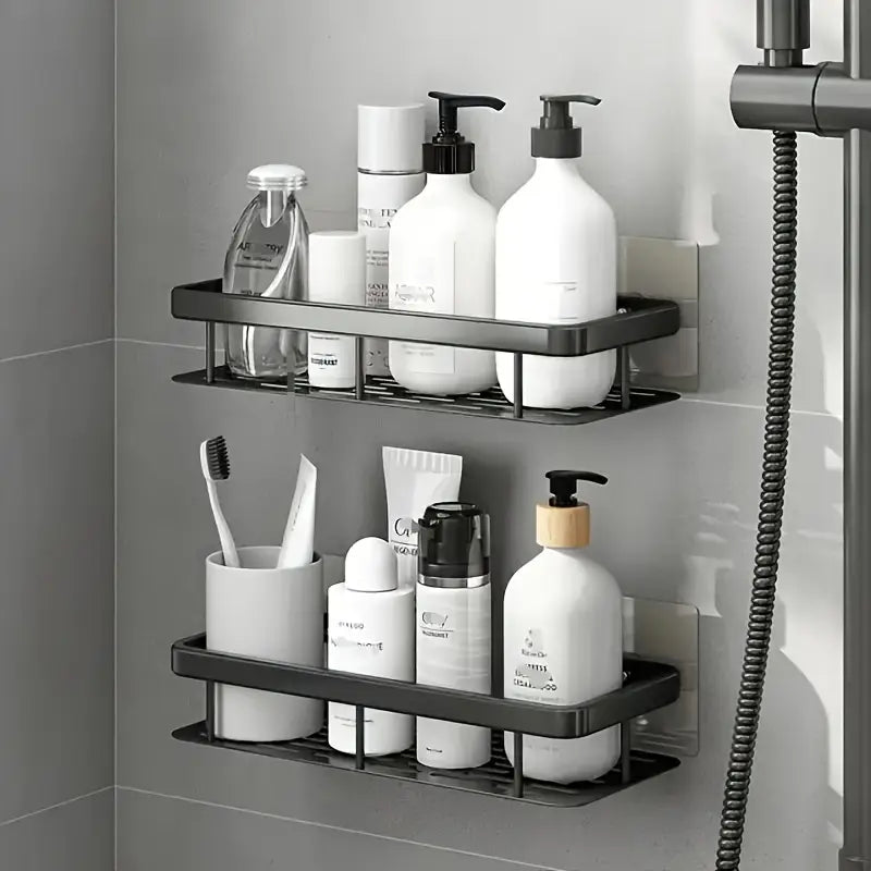 - Komplekt sisaldab kahte riiulit ja lisakonkse, mis suurendavad hoiuruumi ja võimaldavad riputada näiteks käsna või pesulapi.