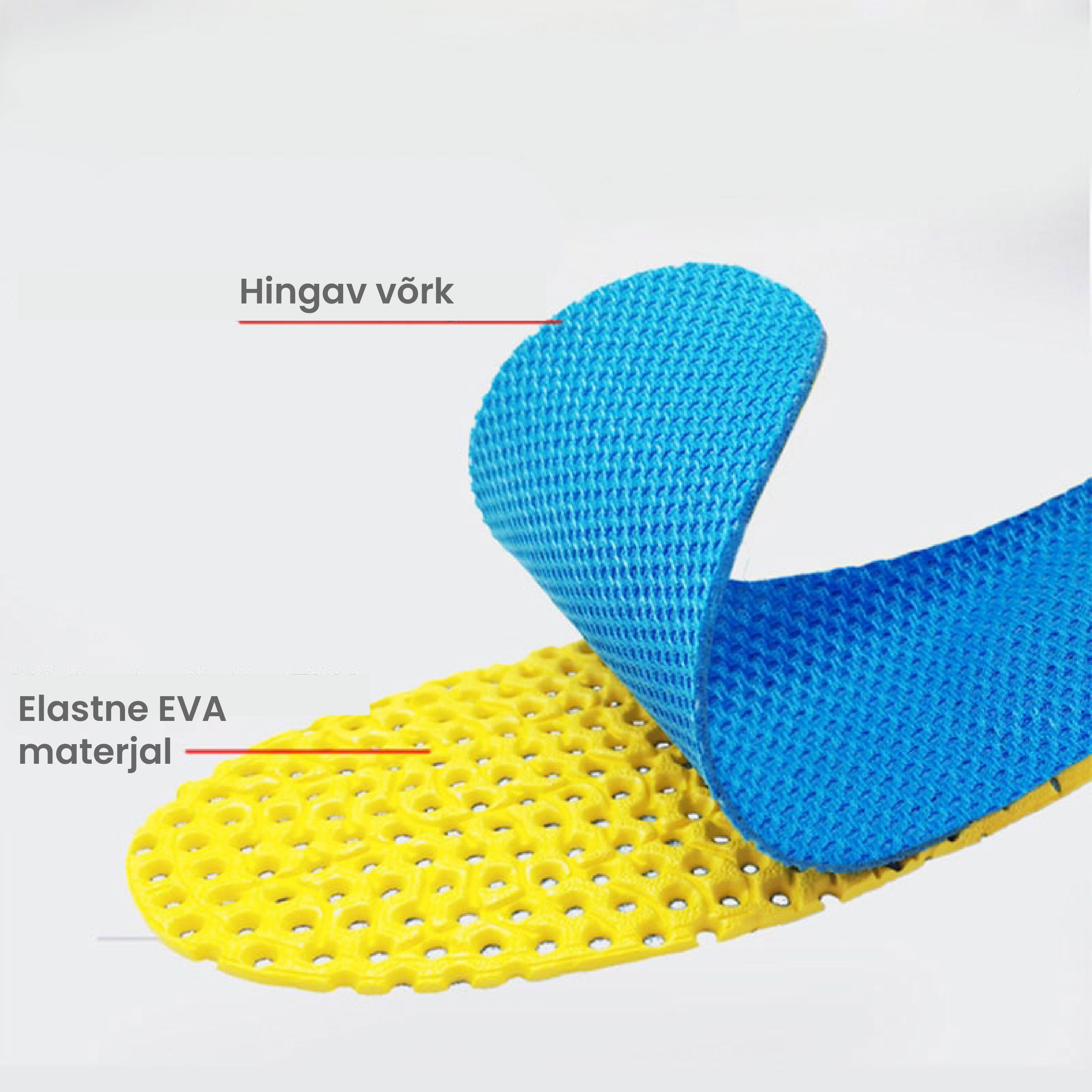 Kõrgkvaliteetne mäluvahust materjal tagab mugava ja pehmendatud sammu joostes, matkates ja kõndides ning ei põruta jalga.