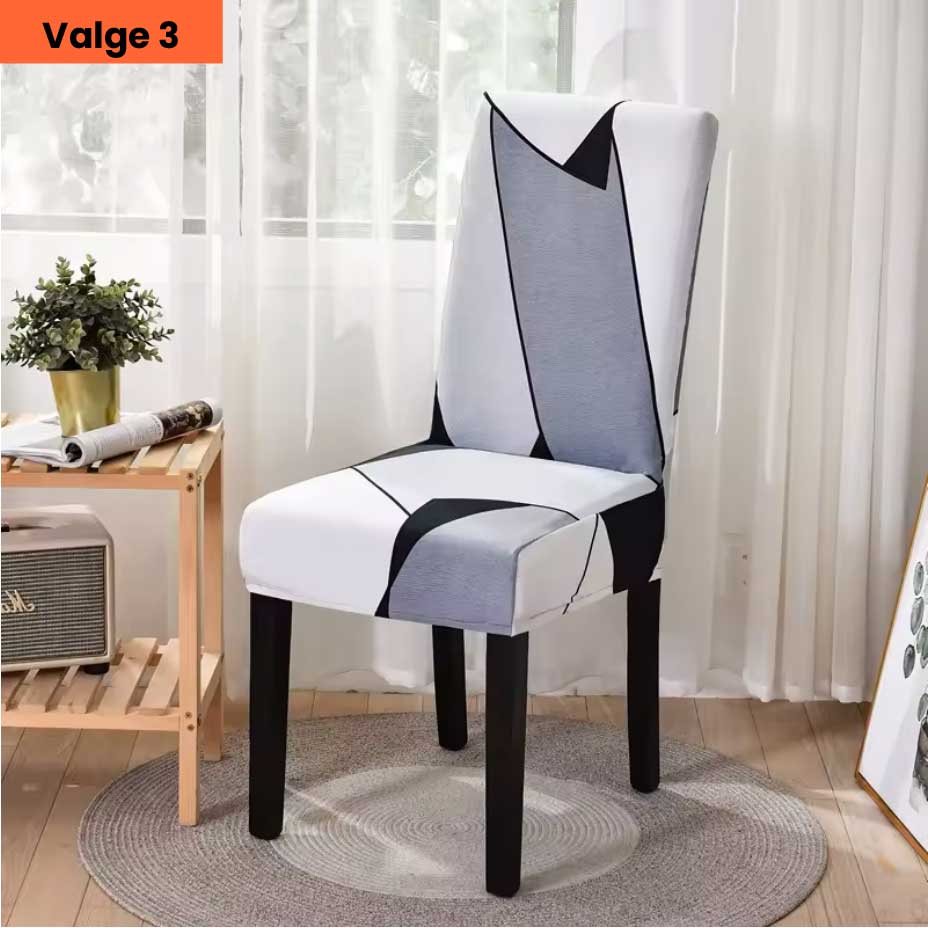 Venivad mustritega toolikatted võimaldavad sul oma toole veelgi kaunimaks muuta või teha vanast uue, pakkudes samal ajal ka kaitset. Toolikatted on universaalse suurusega ja venivast materjalist ning sobivad enamikele toolidele.