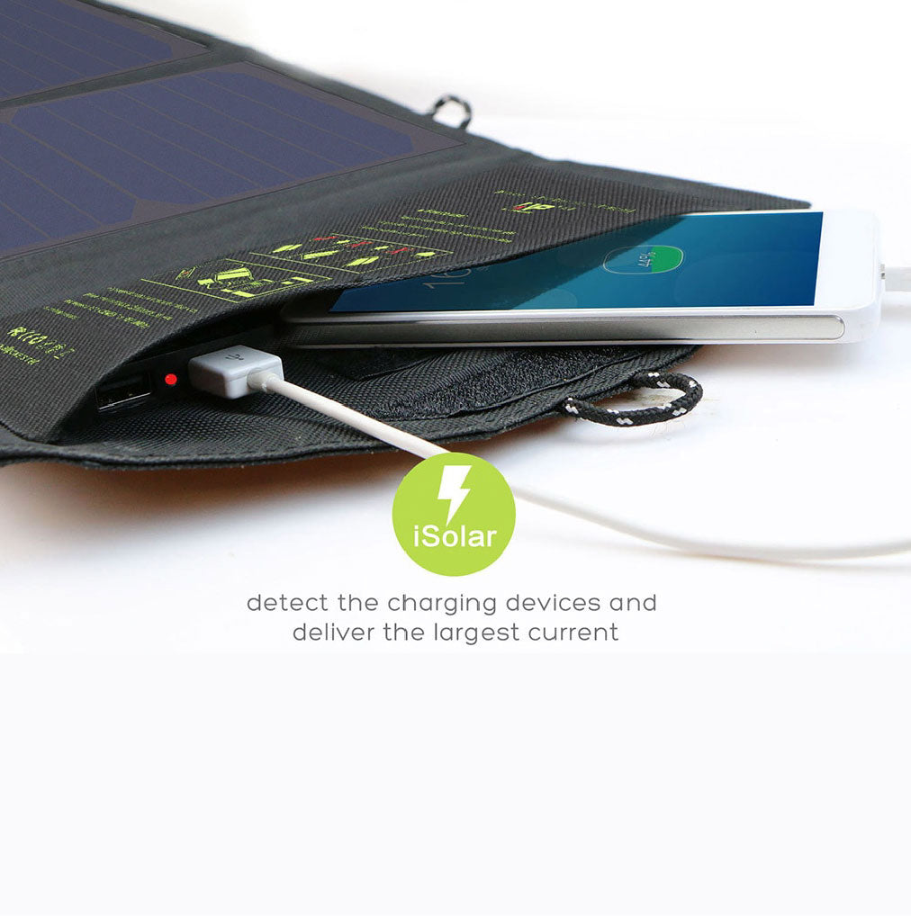Kõrgelt hinnatud kaasaskantav võimas päikesepaneel on suurepärane valik matkamisel telkimisel, paadisõidul või kriisiolukorras nutiseadmete laadimiseks. Efektiivne monokristalliline päikesepaneel toetab uuenduslikku „iSolar“ tehnoloogiat, mis võimaldab ühendatud seadmed kiirelt laadida.